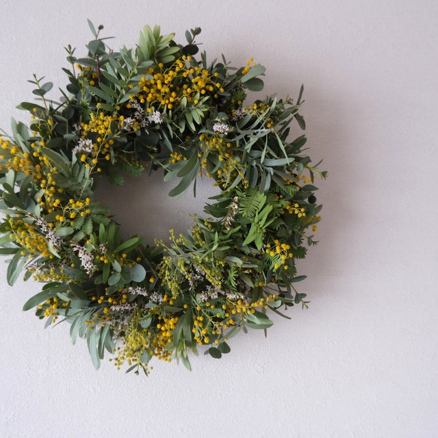 春を彩るミモザリース
