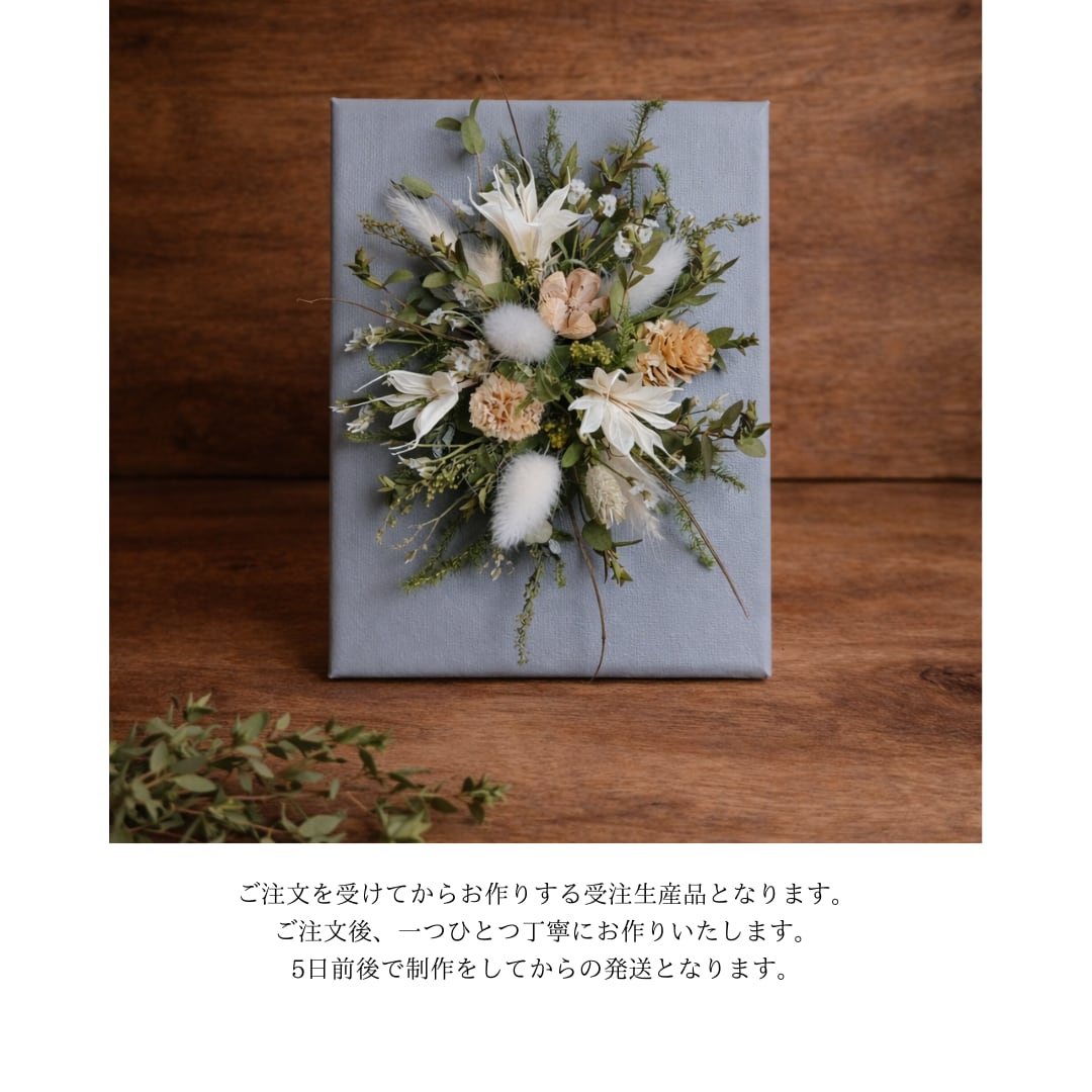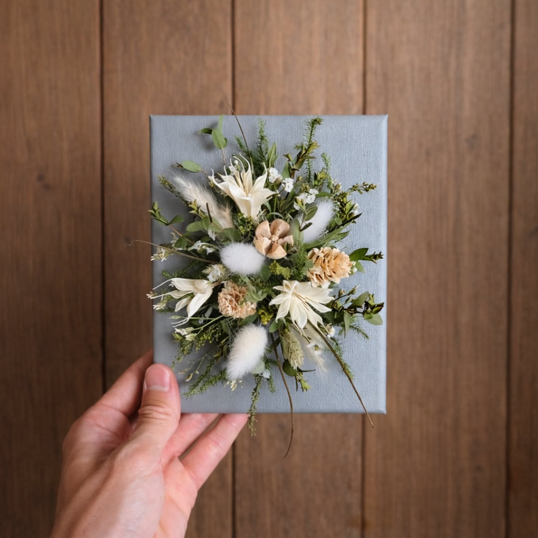 ドライフラワーのキャンバスアレンジメント(グレー)
