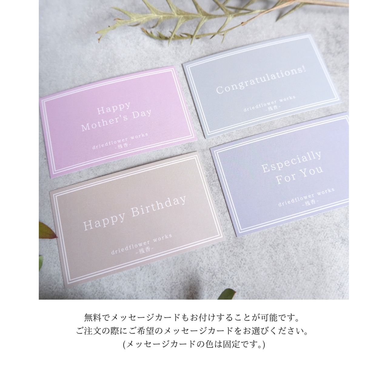 それもドライフラワーならではの味わいとしてお楽しみください。