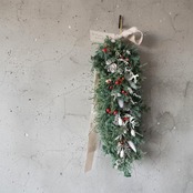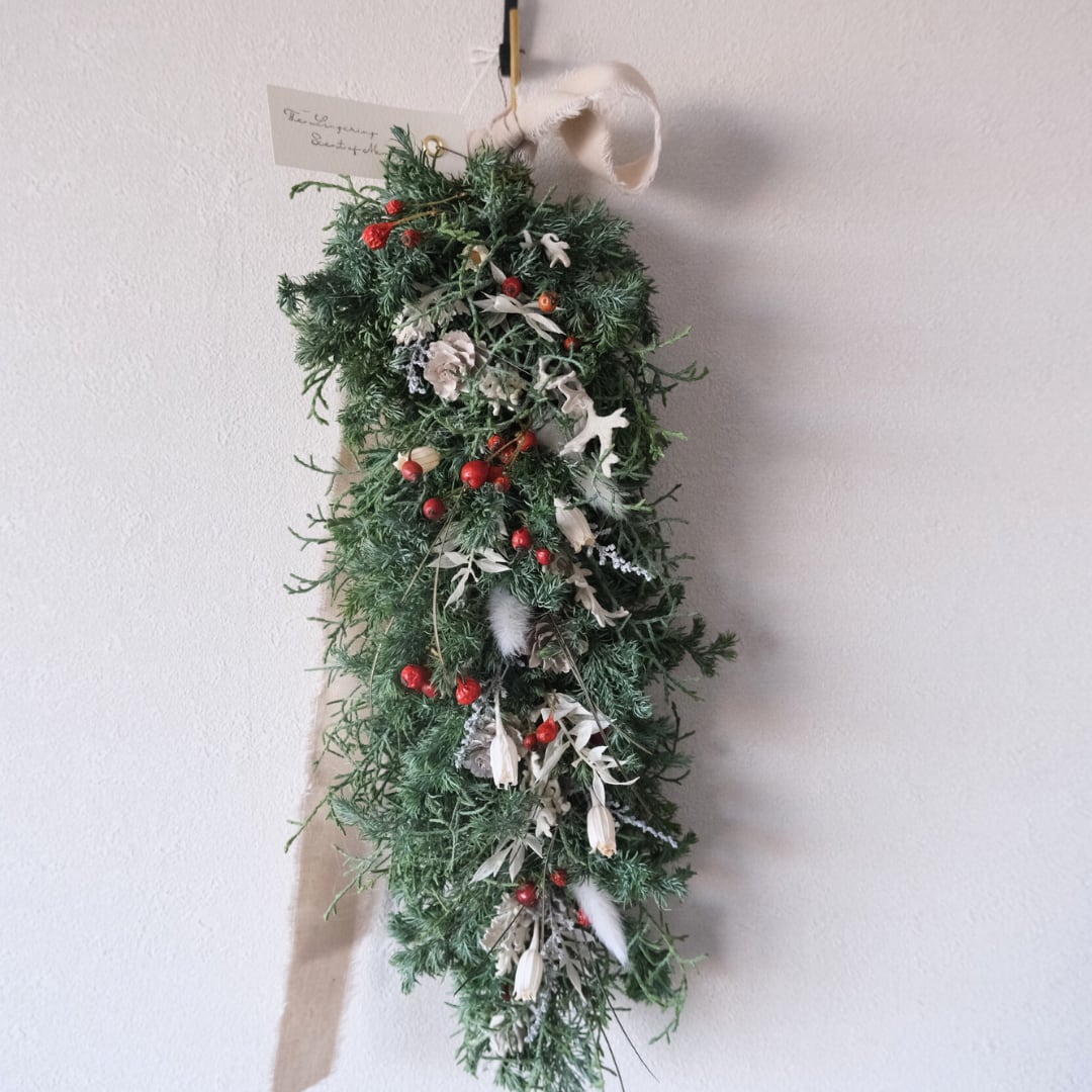 グリーンに白と赤が映える、クリスマスシーズンを彩る縦長のガーランド。