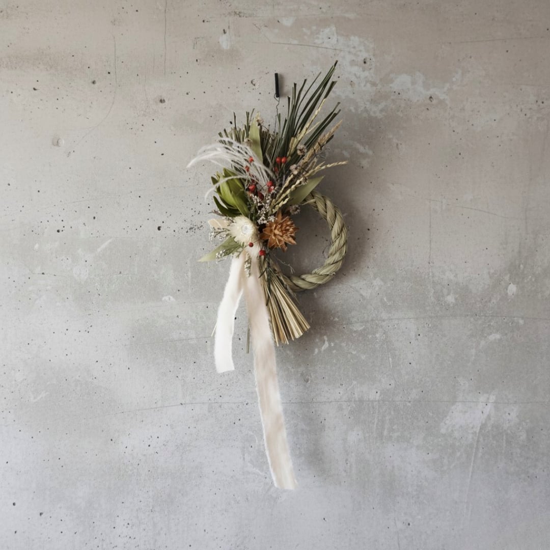自然素材が持つ穏やかな存在感をそのままに、新年を迎えるための清らかな佇まいを表現しました。